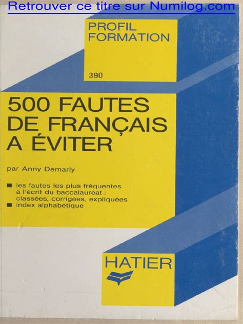500 fautes fran ais viter Kindle Editon By Click Button. 500 fautes fran ais viter it’s easy to recommend a new book category such as Novel, journal, comic, magazin, ect. You see it and you just know that the designer is also an author and understands the challenges involved with having a good book. You can easy klick for detailing book and you can read it online, even you can download it